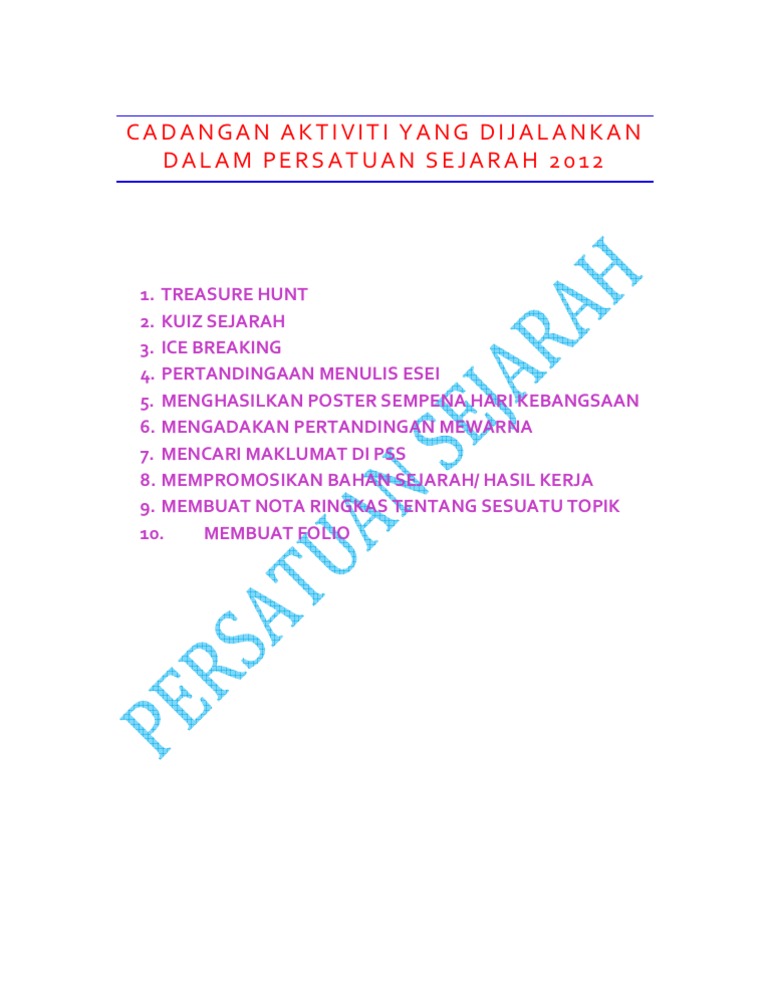 Cadangan Aktiviti Yang Dijalankan Dalam Persatuan Sejarah 2012 Pdf