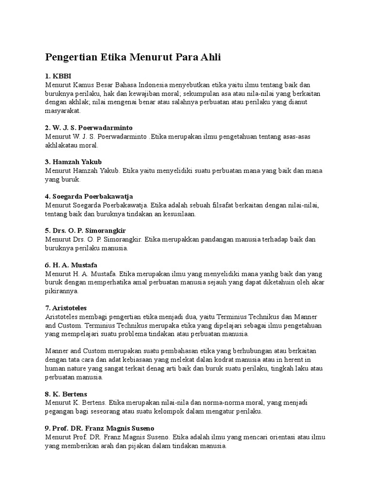 Pengertian Etika Menurut Para Ahli Pdf